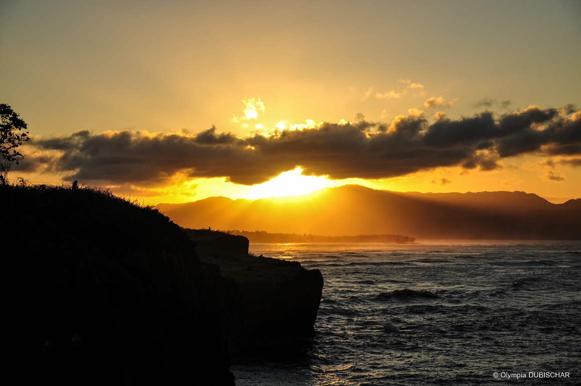 Dans certaines régions –notamment la péninsule de Samaná-, il est fréquent d’avoir des pluies en pleine nuit et un grand ciel bleu toute la matinée, quelques passages nuageux, une fin d’après-midi avec le ciel totalement découvert, et un sublime coucher de soleil grâce aux nuages qui viennent refléter les derniers rayons du soleil sur la mer, la transformant en un miroir doré, transformant parfois le ciel en un rouge flamboyant !